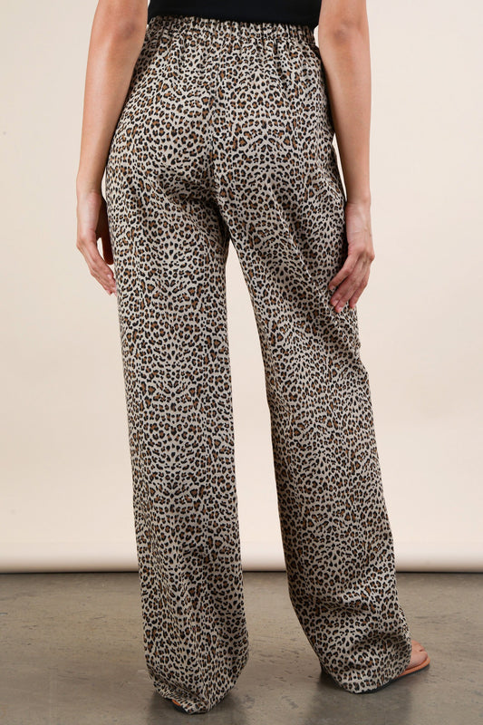 Leopard Print Linen Wide Leg Pants