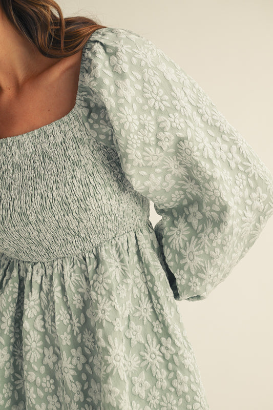 Jacquard Luxe Floral Smocked Baby Doll Dress