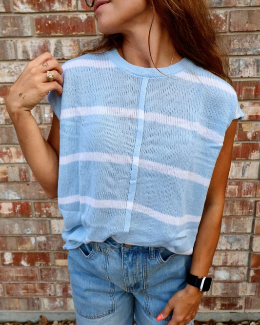 Ladies Round Neck Casual Striped Sweater