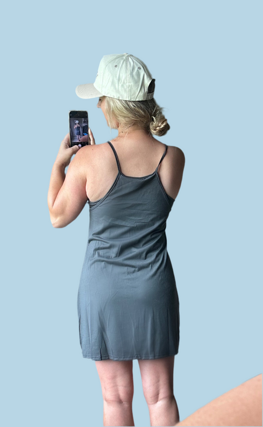 Hot Shot Tennis Athletic Dress Romper-Charcoal