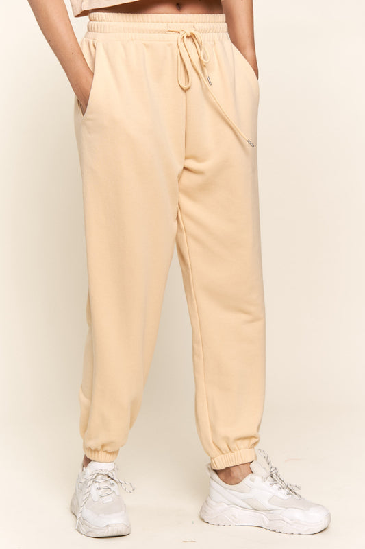 Lightweight Twill Camel Stripe Wide Leg Pants