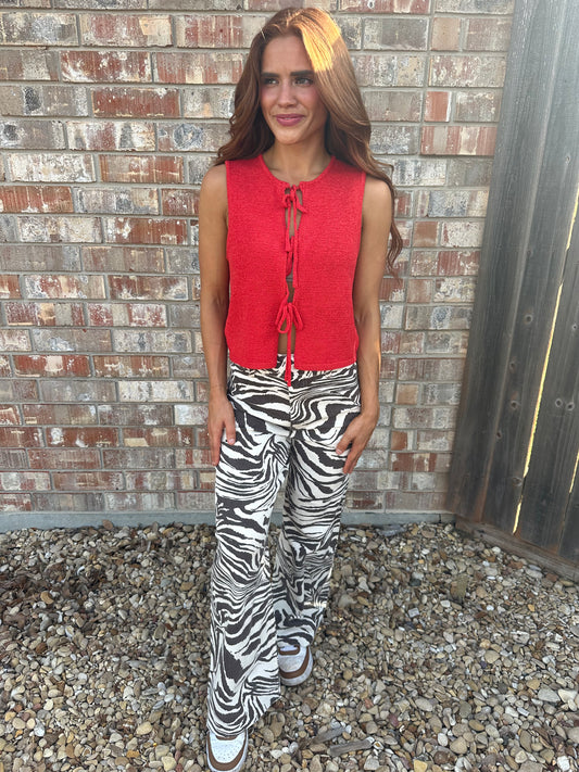 Gingham Wide Leg Elastic Pants W/ Pockets